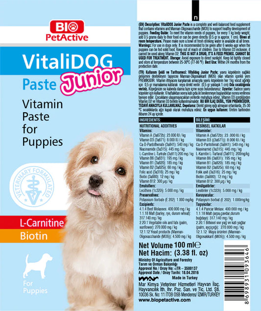 Bio Pet Active Vitali Dog Paste Junior Vitamin Paste For Dogs 100ml