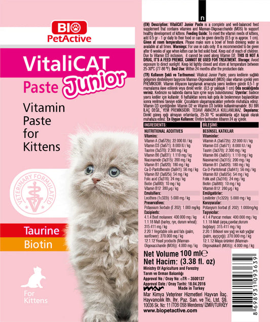 Bio Pet Active Vitali Cat Junior Multivitamin Paste For Kittens 100ml