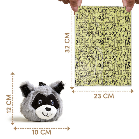 FOFOS Plush raccoon Poop Bag Dispenser 12x6x10 cm