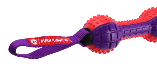 Gigwi Push to Mute Dumbell Optional Squeaky TPR Toy for Dogs - Solid Red Purple