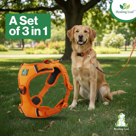 Healing Leaf Set of 3 Collar l Harness l Leash For Dogs l Orange