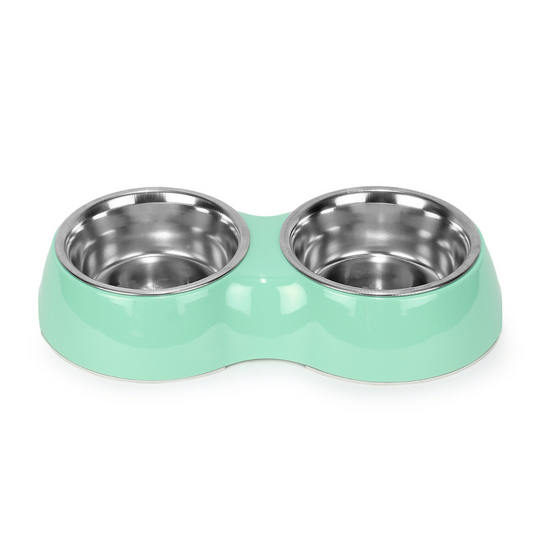 Basil Melamine Double Dinner Set Pet Feeding Bowls for food and water Light Green Small 400ml