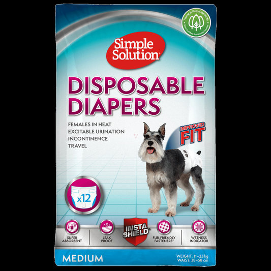 Managing incontinence in pets, whether due to age, illness, or other factors, can be a daunting task. Simple Solution's Disposable Diapers offer a convenient and hygienic solution to help manage your pet’s incontinence with ease. These disposable diapers are designed to provide a secure, comfortable fit that stays in place, even on the most active pets.
