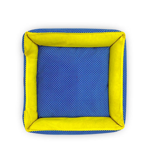 Tails Nation Yellow & Blue Polka Dots Plush Lounger Bed for Dogs