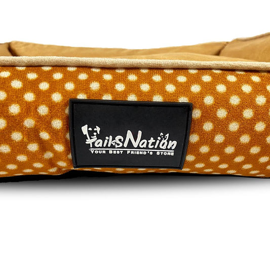 Tails Nation Mustard Polka Dot Plush Lounger Bed for Dogs