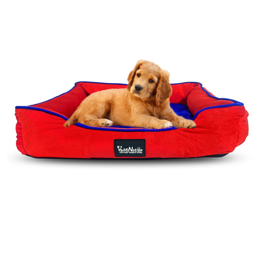 Tails Nation Solid Red & Blue Plush Lounger Bed for Dogs