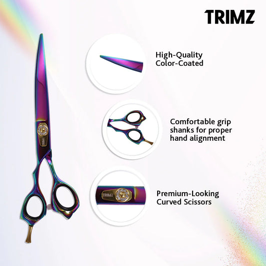 Trimz Left Handed Curved Scissor 7inch Rainbow