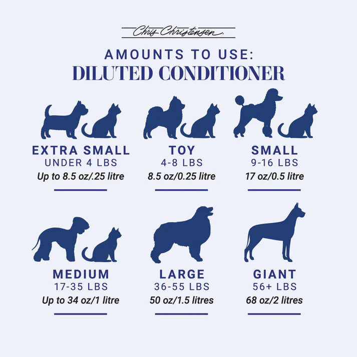 Wet coat. Apply directly to the coat and work into a lather, massaging gently. Rinse thoroughly. Repeat if desired. Finish with Chris Christensen Diamond Series Miracle Moisture Conditioner.