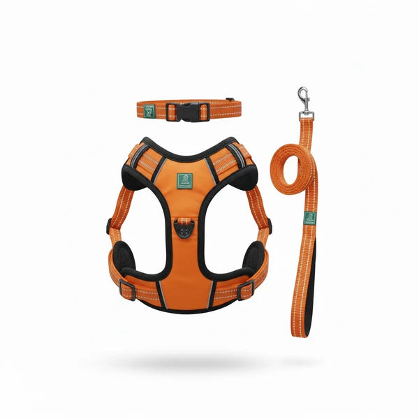 Healing Leaf Set of 3 Collar l Harness l Leash For Dogs l Orange
