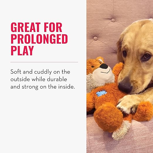 KONG Wild Knots Giraffe is soft and cuddly on the outside yet durable and strong on the inside thanks to a rope skeleton that satisfies dogs’ natural instincts. Squeaks and crinkles extend the safari while minimal stuffing means less mess. Plush body is great for snuggling.