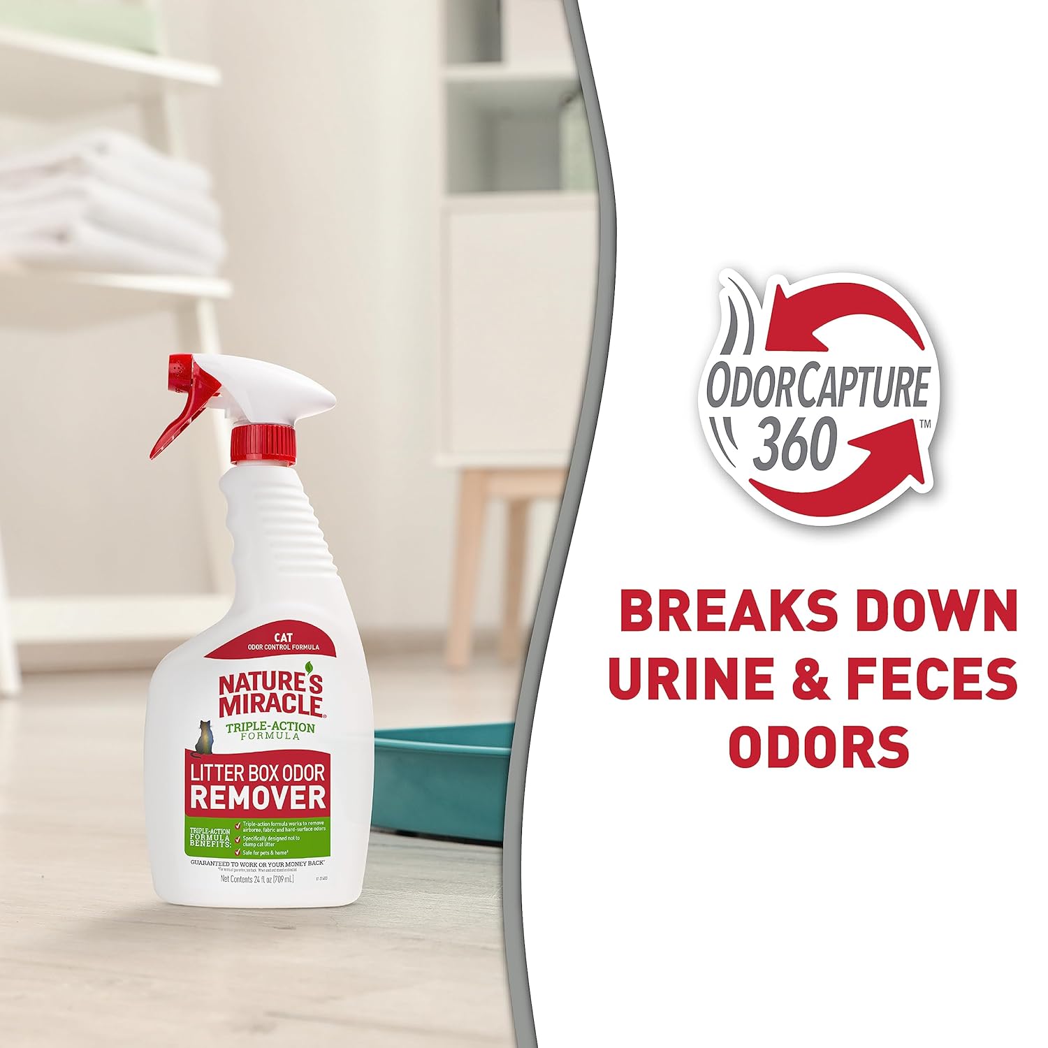 Nature’s Miracle Litter Box Odor Removers work to remove airborne, fabric and hard surface odors. With multiple delivery methods, including aerosol foam, scrubbing wipes and spray formulas, these products can be used on multiple surfaces, including plastic, litter box mats or anywhere your pet goes. Nature’s Miracle Litter Box Odor Removers are tough on urine and feces odors while being safe for pets and home when used as directed.