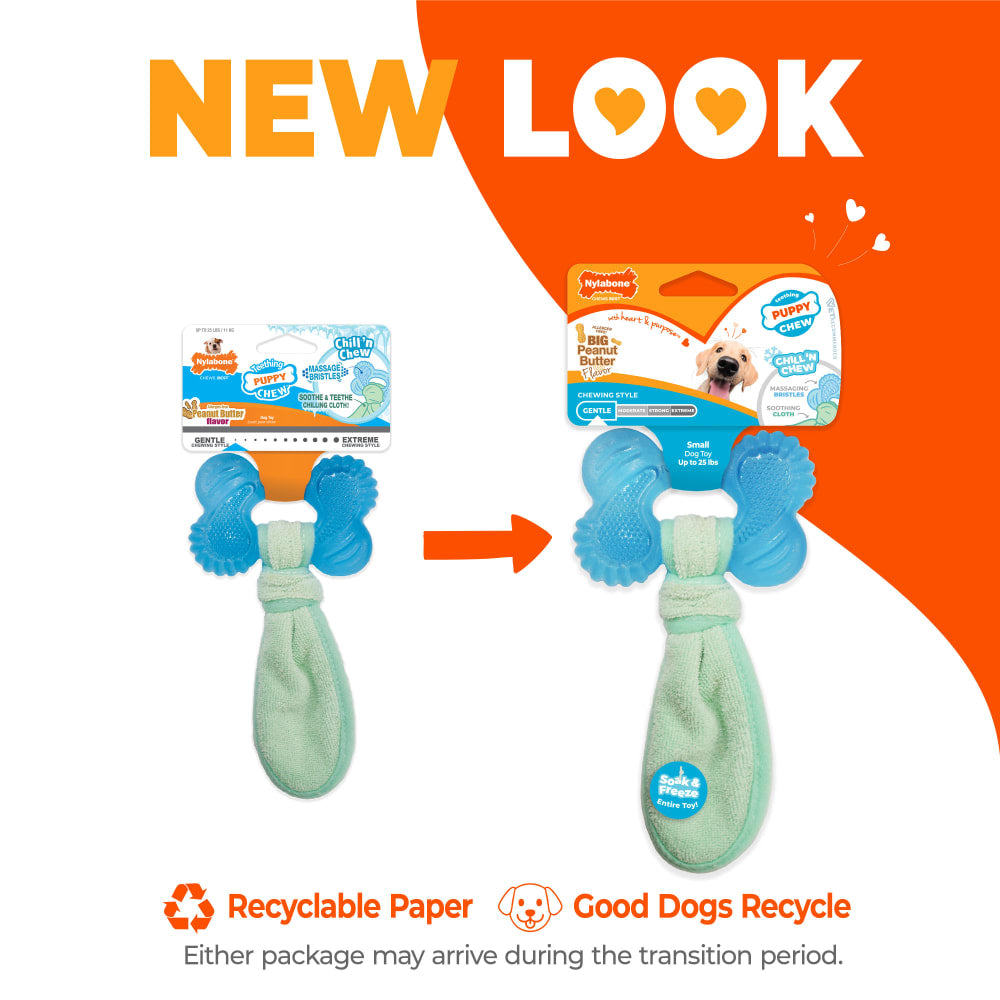 Nylabone Puppy Chew 2-in-1 Teething Freezer Bone Cloth Chew Toy Peanut Butter Flavor