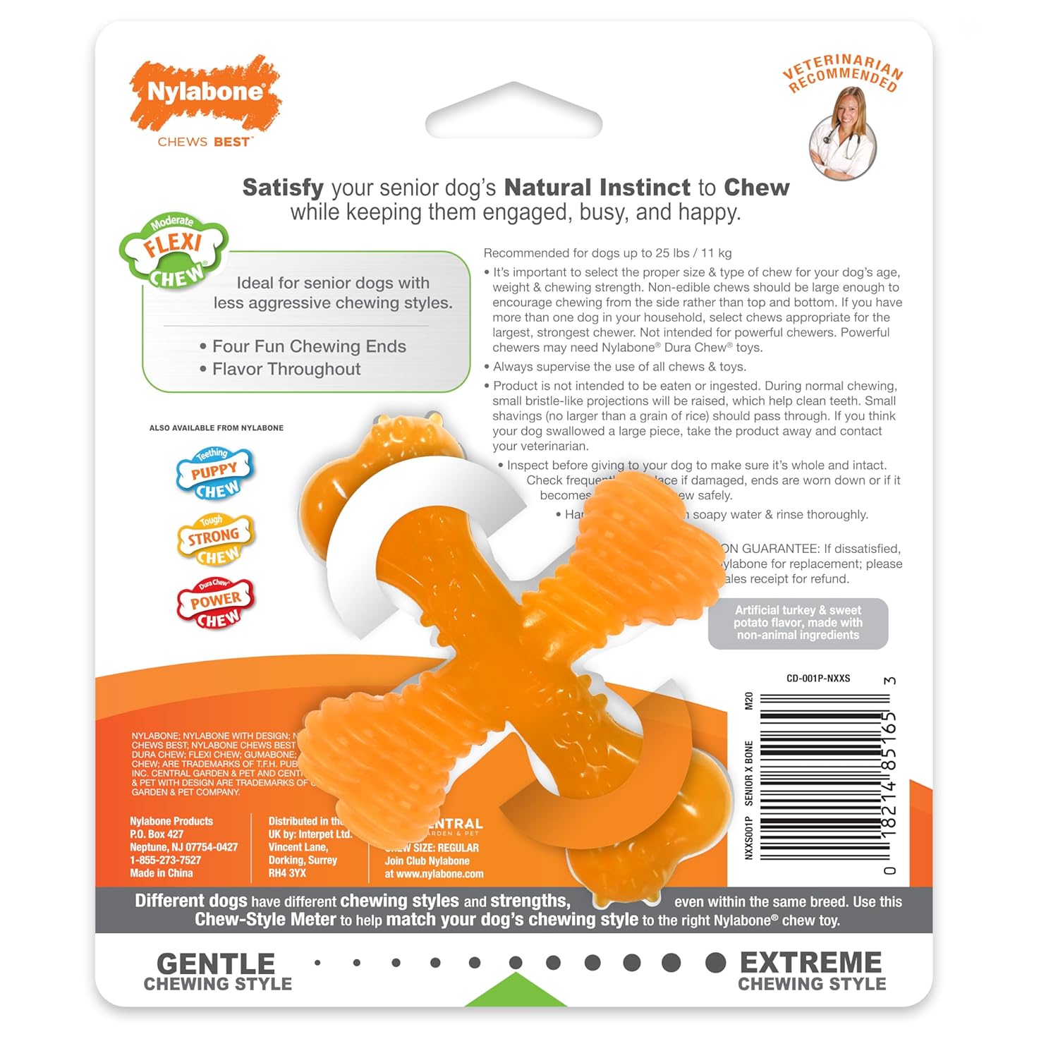 Nylabone Flexi Chew Bone toys are non-edible dog chews designed to keep your pup busy, happy, and entertained while satisfying their natural urge to chew. With a softer, more flexible material, it's available in a variety of irresistible Flavours that your pup will love. Nylabone's Flexi range makes it an ideal toy for senior dogs to help them live an enriched life.