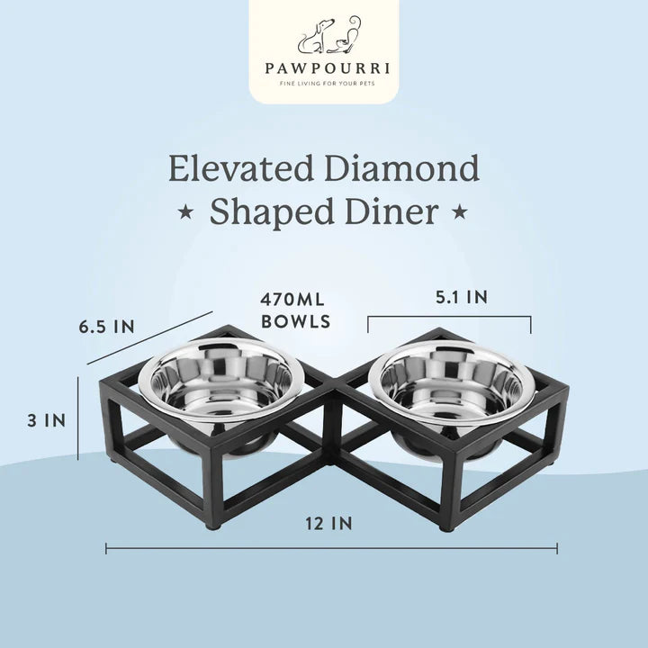 Pawpourri's newest durable 'Ruff & Tuff' stainless steel bowls with a premium finish and stand is going to be the perfect addition to your pets eating routine. This Elevated Metal Double Diner is designed to provide your dog with the perfect height to eat and drink comfortably. The bowls are removable, easy to clean and dishwasher safe.