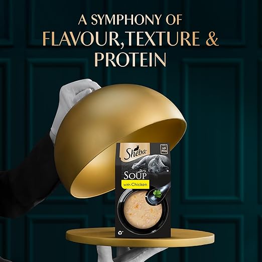 Introducing the new Sheba Soup with Chicken, a gourmet indulgence crafted to transform ordinary mealtimes into moments of affection. Made with 100% natural chicken, finely sliced and served in a silky, velvety broth, this exquisite topper is masterfully prepared to delight your ca's refined palate. Crafted by experts at the WALTHAM Petcare Science Institute, Sheba Soup blends quality ingredients with culinary precision. With no added preservatives and up to 88.5% moisture, it supports hydration while elevating your ca's daily meal with nourishing care. Packaged in elegant, see-through pouches that showcase its purity, Sheba Soup is more than just a meal enhancer - i's an experience. Whether served alone or as a topper, each pouch turns feeding into a cherished ritual - because all they want is Sheba.